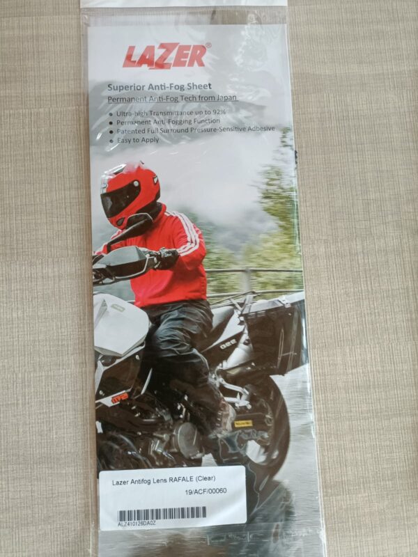 The Lazer Rafale Anti-Fog Lens is designed to prevent fogging, ensuring clear vision in all riding conditions. This essential accessory is a must-have for any rider.